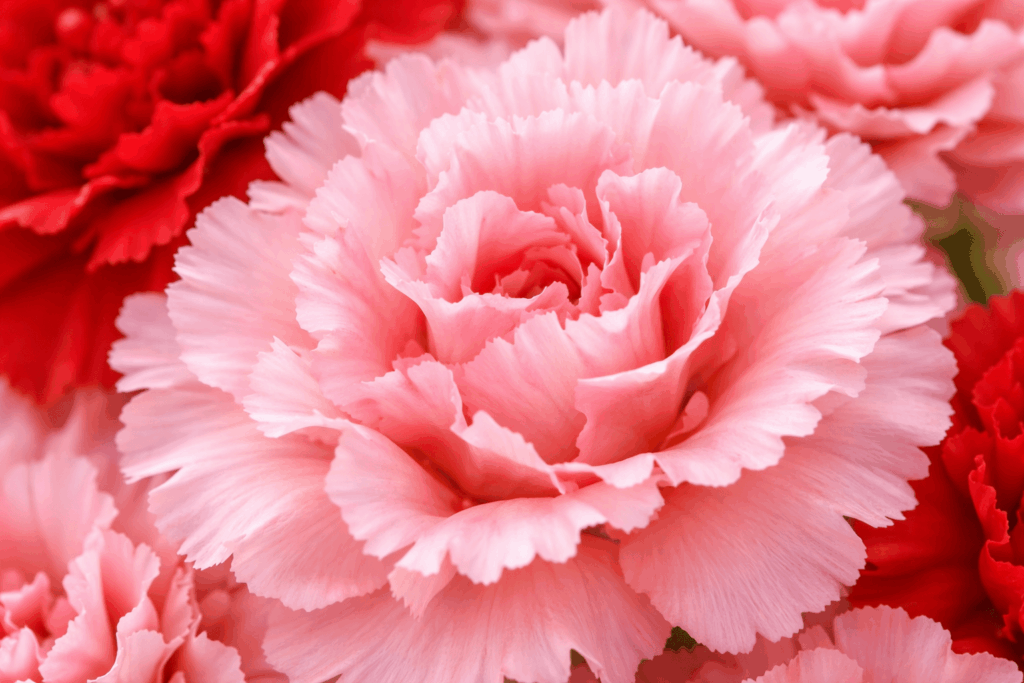 カーネーションは、花びらの縁がギザギザしていて、くっきり華やかに見える花です。